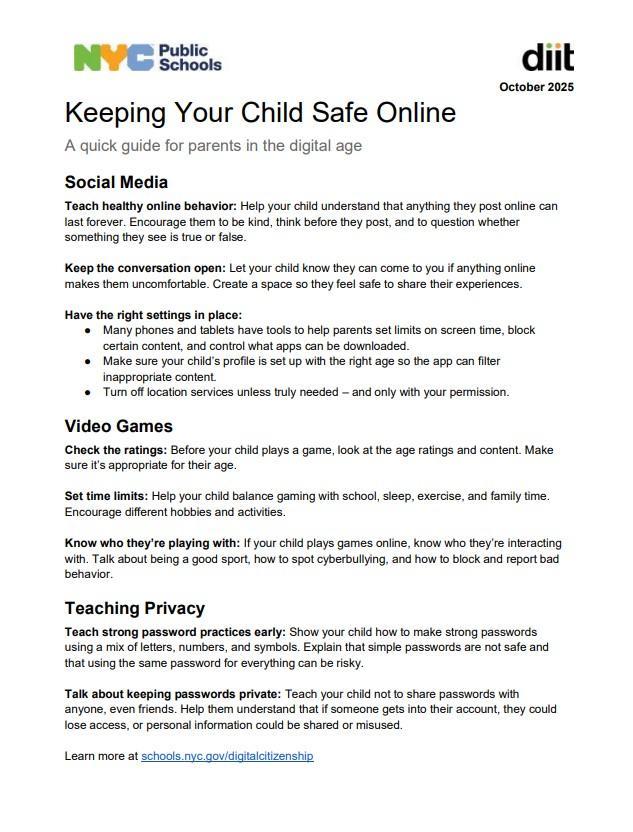 Keeping Your Child Safe Online Please see attached flyer for tips on helping your child stay safe online.